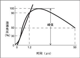 用來表示對雷擊或感應(yīng)性負荷通斷時產(chǎn)生的瞬時異常電壓的耐久性的限界值。浪涌波形根據(jù)JEC-212-1981表示為1.2×50μs的標準沖擊電壓波形。