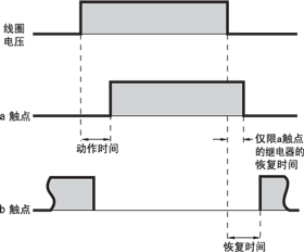 從對繼電器的線圈施加額定電壓時開始,到a觸點接觸為止的時間。不含觸點彈跳時間。對于磁保持繼電器而言,是在復(fù)位狀態(tài)下從向線圈施加額定電壓開始到a觸點接觸為止的時間。