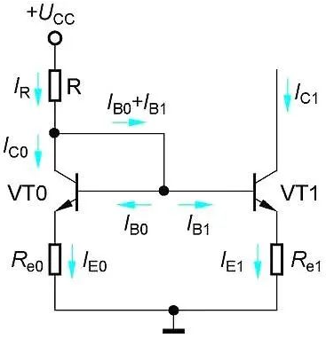 若Re0很小甚至于為零,則Re1只采用較小的電阻就能獲得較小的輸出電流,這種電路稱為微變恒流源,如下圖所示。集成運放輸入級靜態(tài)電流很小,往往只有幾十微安,甚至更小,因此微變電流源主要應(yīng)用于集成運放輸入級的有源負載。